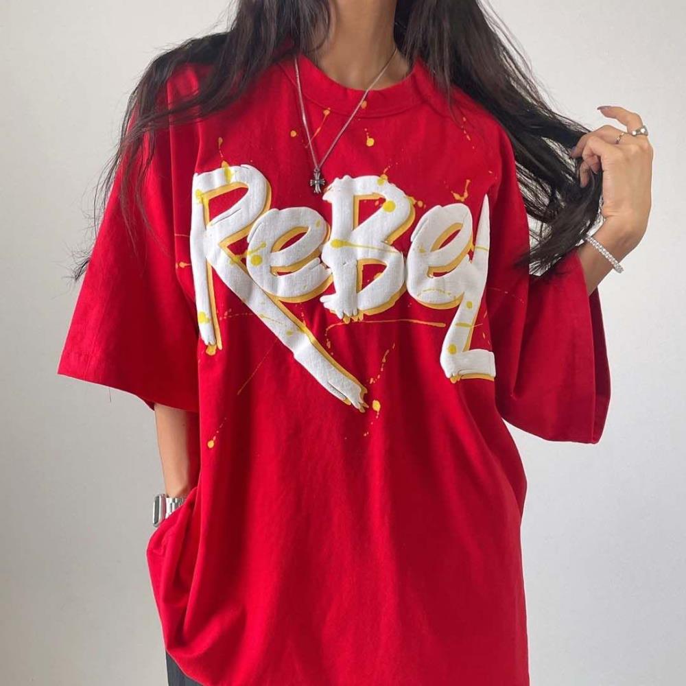 여자 힙한반팔티 페인팅 레터링 박시핏 여름 티셔츠