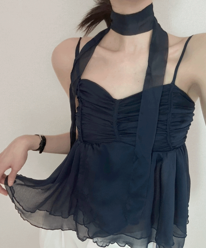 고렴ver[예쁘고 힙해!/스카프세트!] 끈조절가능, 쉬폰 프릴 캉캉 밴딩 나시 블라우스