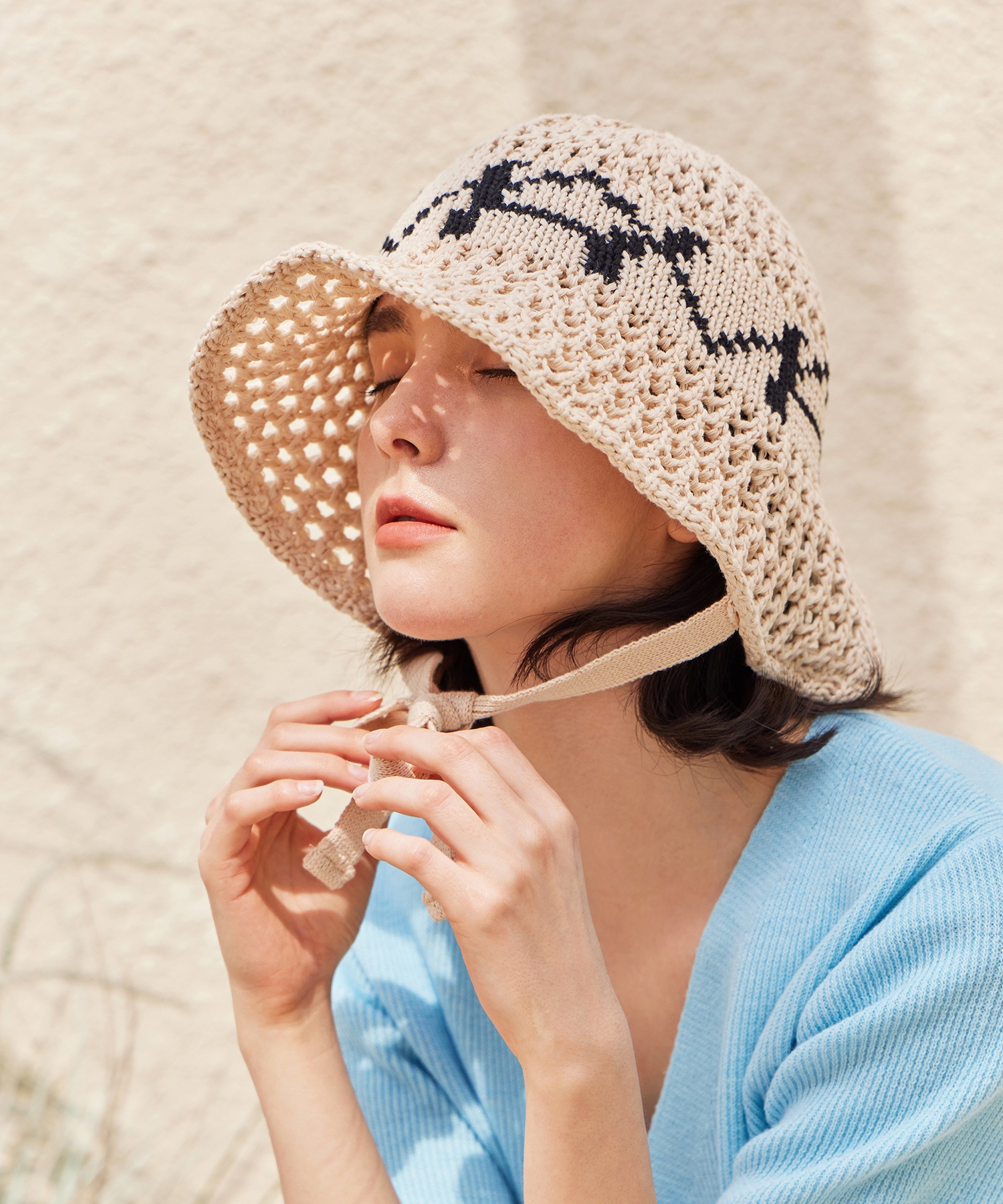 VA 디지털 로고 펀칭 보닛햇 베이지