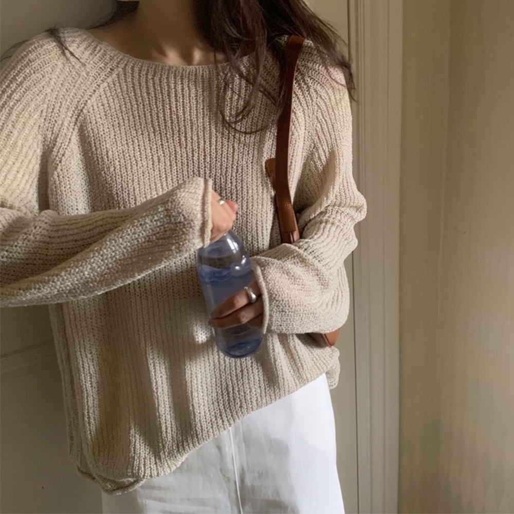 [살안타템/여리핏] 미네르 보트넥 그물 부클 루즈핏 커버업 긴팔 여름 니트