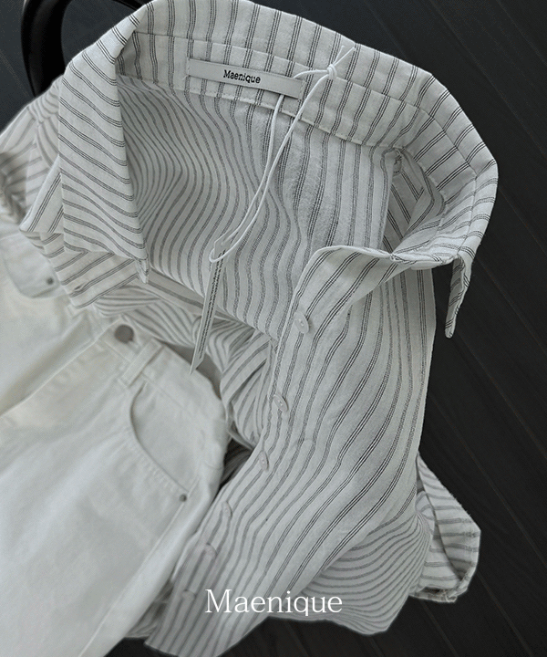 [단독] [4만장판매/MNQ] 에이라 스트라이프 오버핏 셔츠 (반팔/긴팔)
