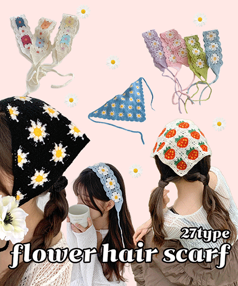 [ summer ! 휴양지룩 / 여리여리 ] 뜨개 니트커치프 두건 아이돌 히피룩 러블리룩 헤어스카프 니트 뜨개두건 반다나