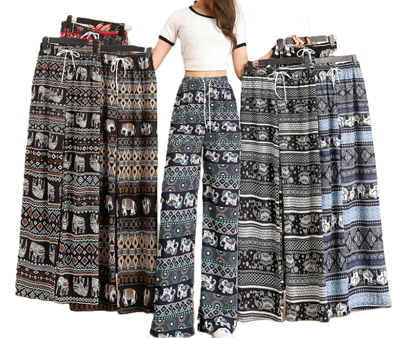 [4컬러] 태국코끼리바지 여성긴바지 여자긴바지 패턴바지 밴딩 와이드 바캉스 여름 패션바지 코끼리바지 파자마 홈웨어 잠옷바지 여성여름바지 여자여름바지 데일리 와이드팬츠