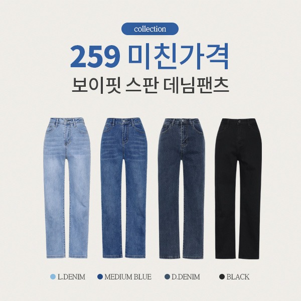 [쫀쫀스판/극강편안함] 259미친가격_보이핏 스판 데님팬츠(25~34) (여름청바지-보이핏청바지-일자청바지-일자핏-일자데님-빅사이즈청바지-스판청바지-스판데님)
