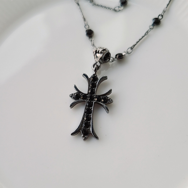 [미랑] 블랙 십자가 크로스 레이어드 고스 락시크 목걸이