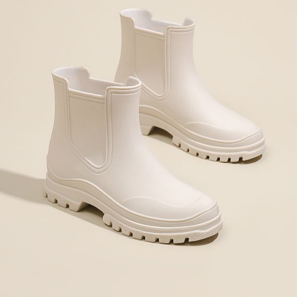 첼시 앵클 레인부츠3cm 230-250 베이지 블랙 여성장화