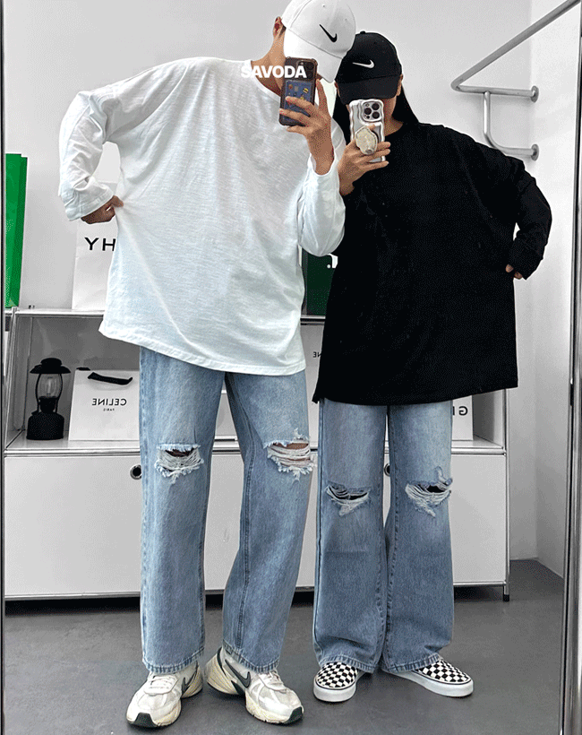 커플청바지 커플데님 무파진 남녀공용 유니섹스 남자청바지 남자데님 찢청