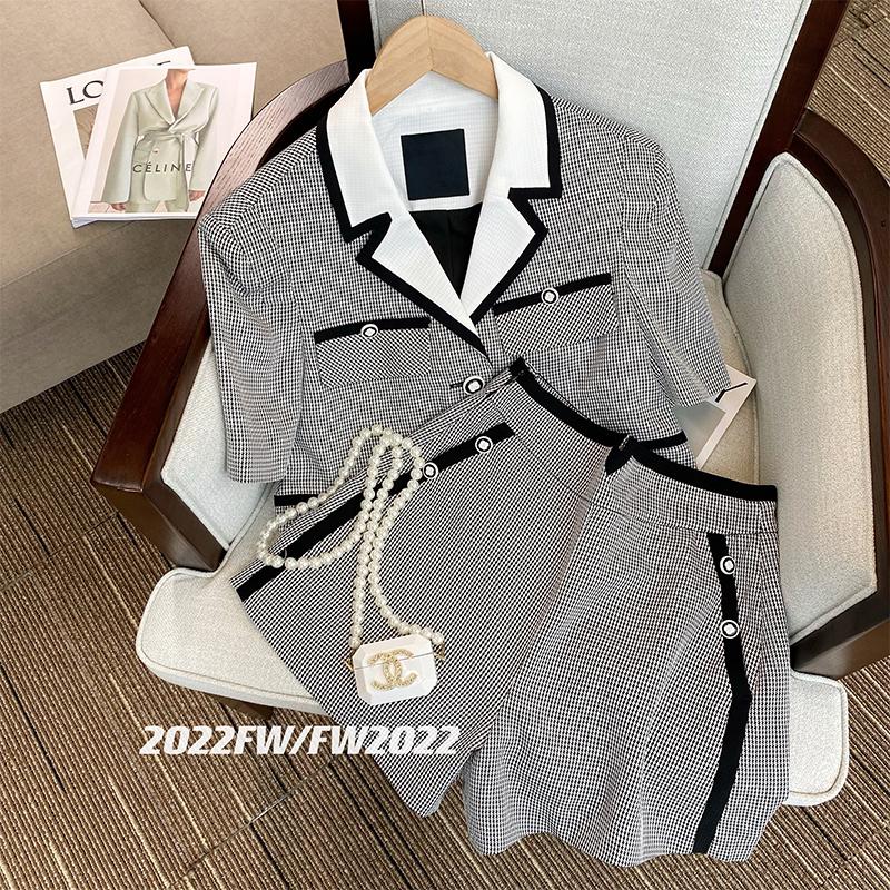 크롭 자켓 셋업 숄카라 세미 정장 여성 슈트 체크 반바지 결혼식 하객룩 44사이즈