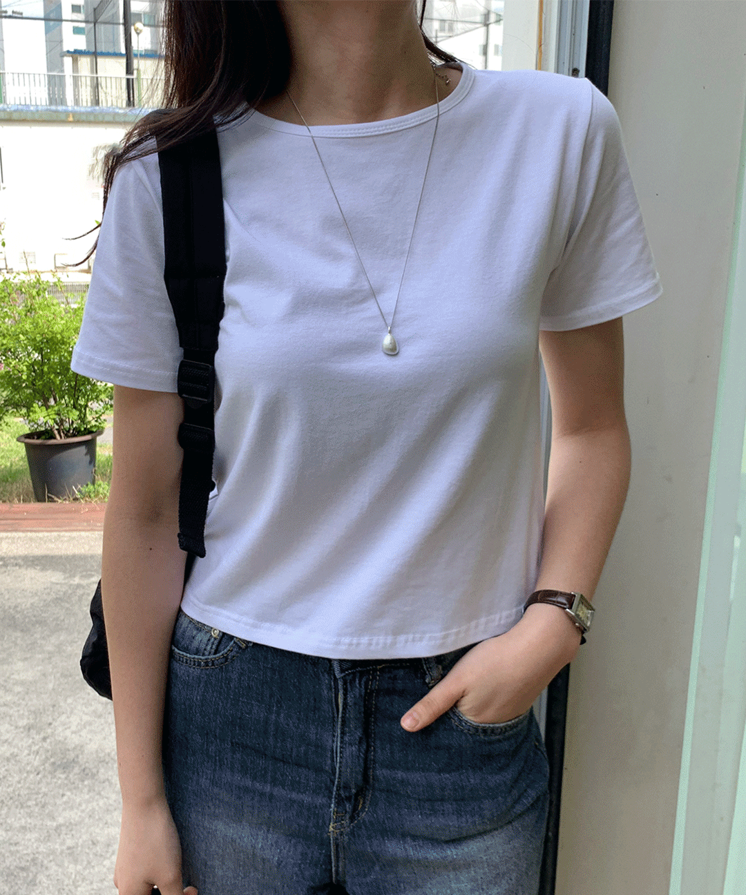 당일출고🚀세미 크롭 반팔티 모달 이너 티셔츠 흰티