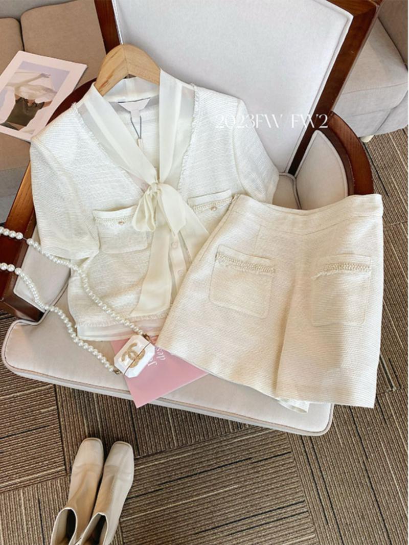 트위드 반팔 반바지 투피스 여성정장세트 셋업 결혼식 하객룩 상견례옷차림 명품 44사이즈