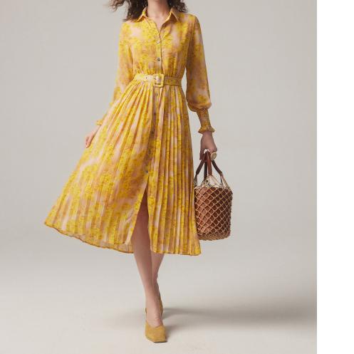 쉬폰 플리츠 원피스 옐로우 벨트 셔츠원피스 햅번 엄마옷