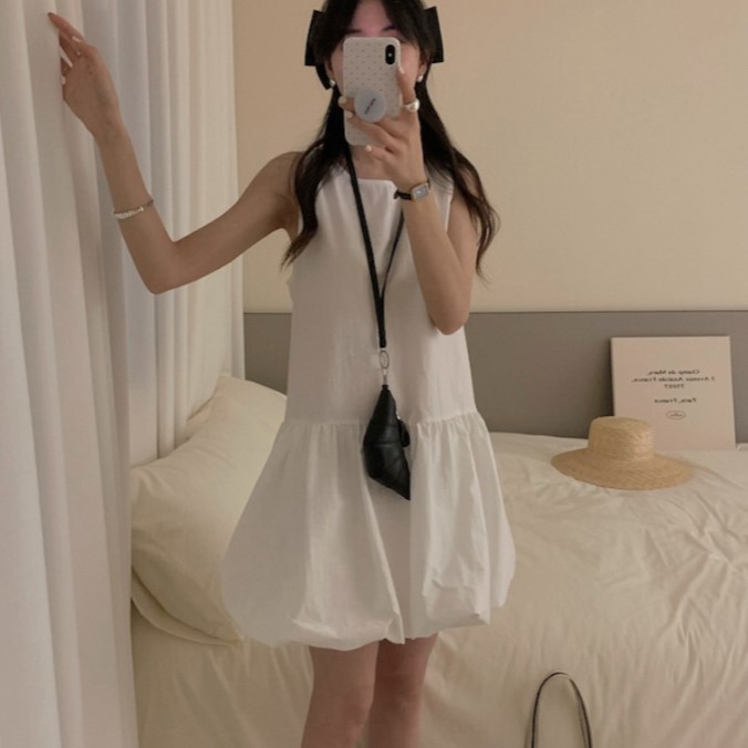 러블리 벌룬 미니 나시 원피스 귀여운 데이트 여친룩 모던 하객룩 레이어드 여름 캐주얼 발레코어 트렌디 페미닌