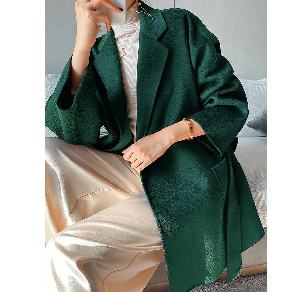 울 100 그린 벨티드 초록색 자켓 반코트 하프코트 빅사이즈