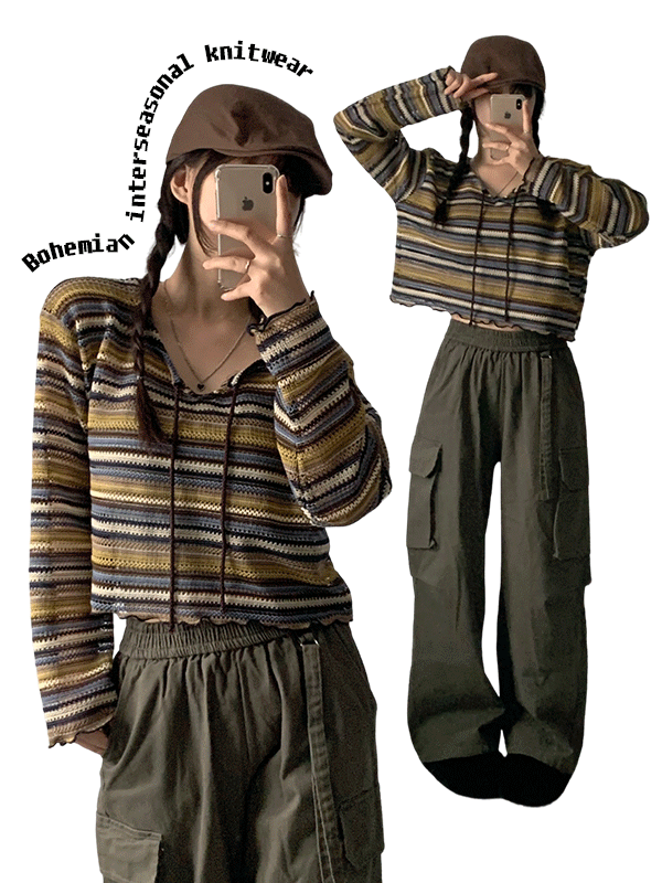 빈티지 보헤미안 스트라이프 간절기 니트