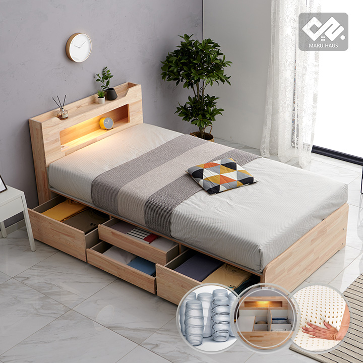 [착불배송] 국내산100% 리플레쉬 편백원목 LED조명 3서랍 4서랍 벙커수납 침대