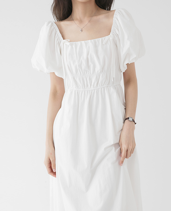 모얼 리본 투웨이 스퀘어넥 롱 반팔원피스 (2color)