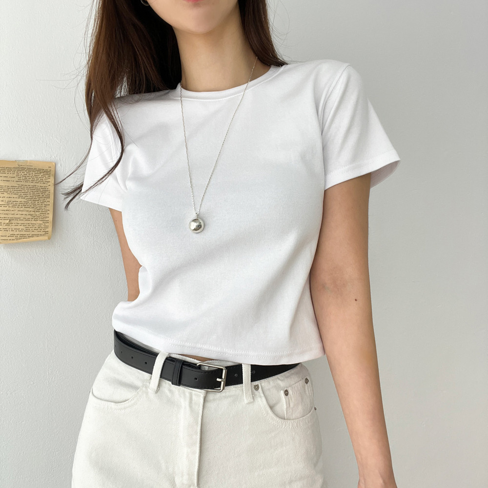 (무배) 늘어짐없는 스판 세미 크롭 베이직 라운드넥 기본 무지 반팔 티셔츠 4color