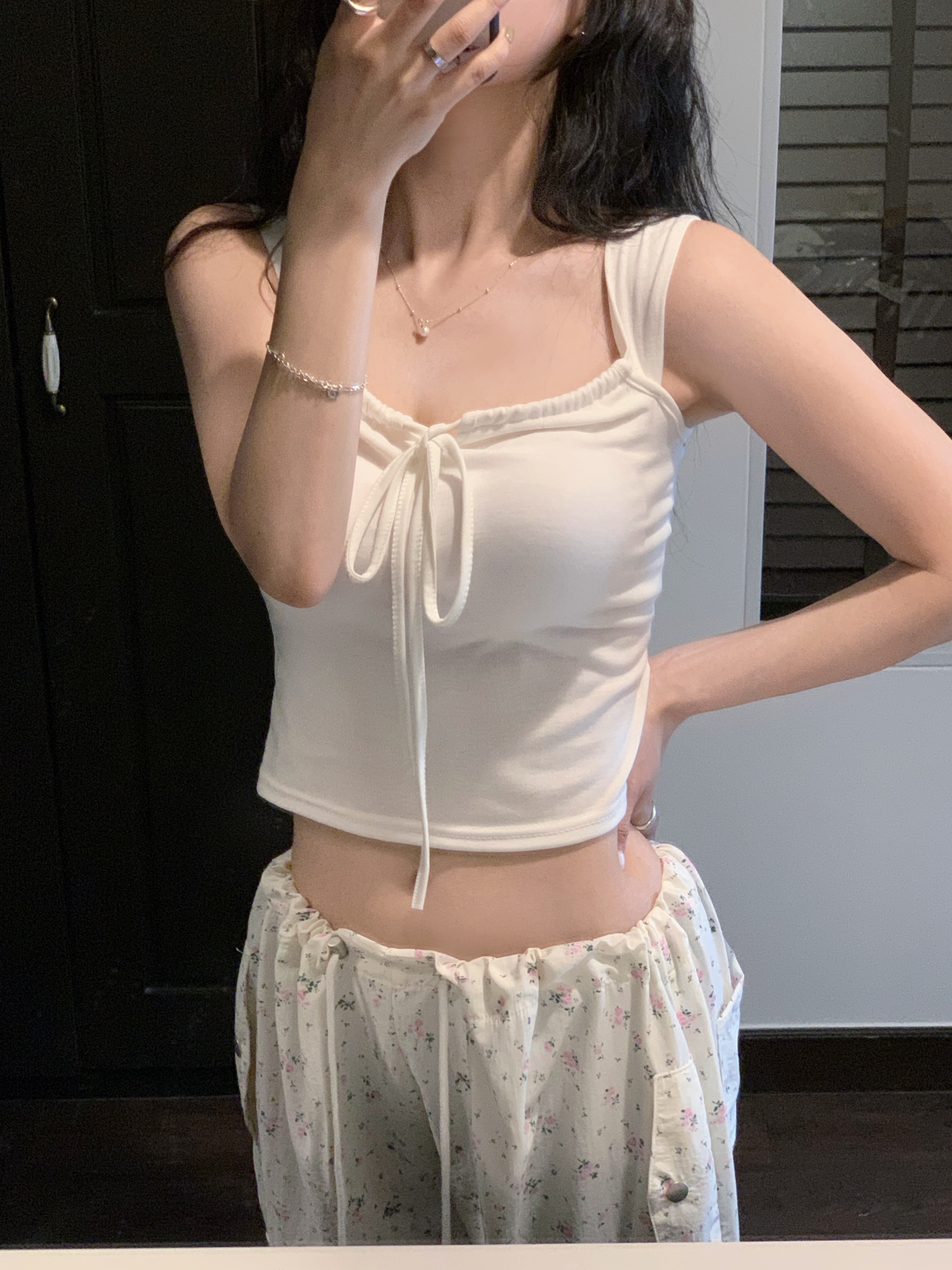[캡내장୨୧] 걸리시 리본 캡 나시 - 4color (발레코어/이너프리/러블리/리본나시/이너나시/셔링)