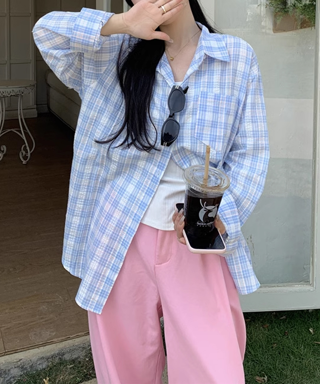 [🌈블루셔츠/보송보송 엠보/체크패턴/캠퍼스룩/가을아우터🚀무배] 와니 엠보 체크셔츠 s160288