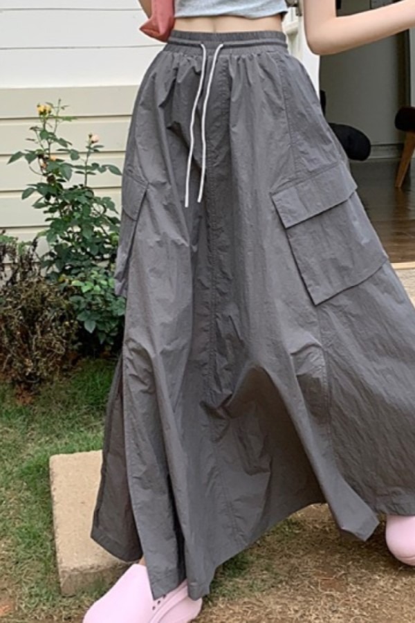 아리 하이웨스트 드레이프 캐주얼 슬릿 A라인 롱스커트
