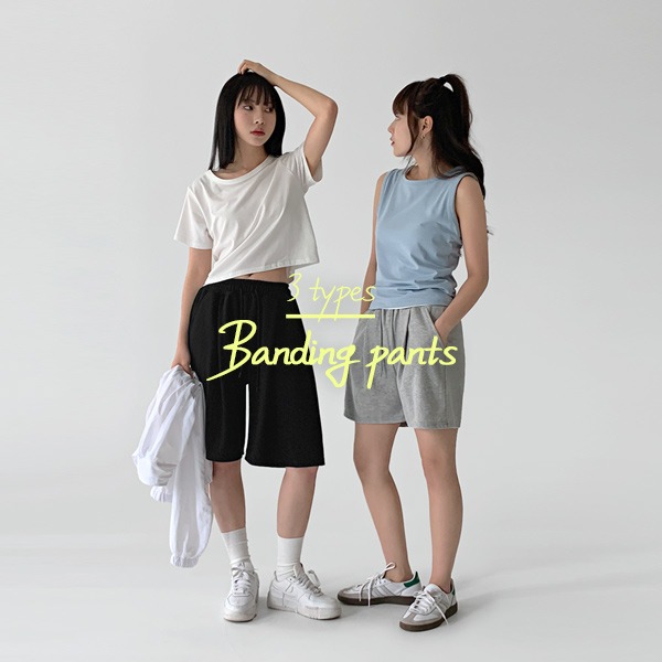 [3기장][숏/미들/롱][MADE] 트리먼 핀턱 밴딩 하프 팬츠(44~110) (여름반바지-간절기코디-트레이닝팬츠-홈웨어룩-코튼팬츠-스판팬츠-데일리룩-버뮤다팬츠-츄리닝바지-트레이닝바지-추리닝바지-장마룩-장마템-롱팬츠)