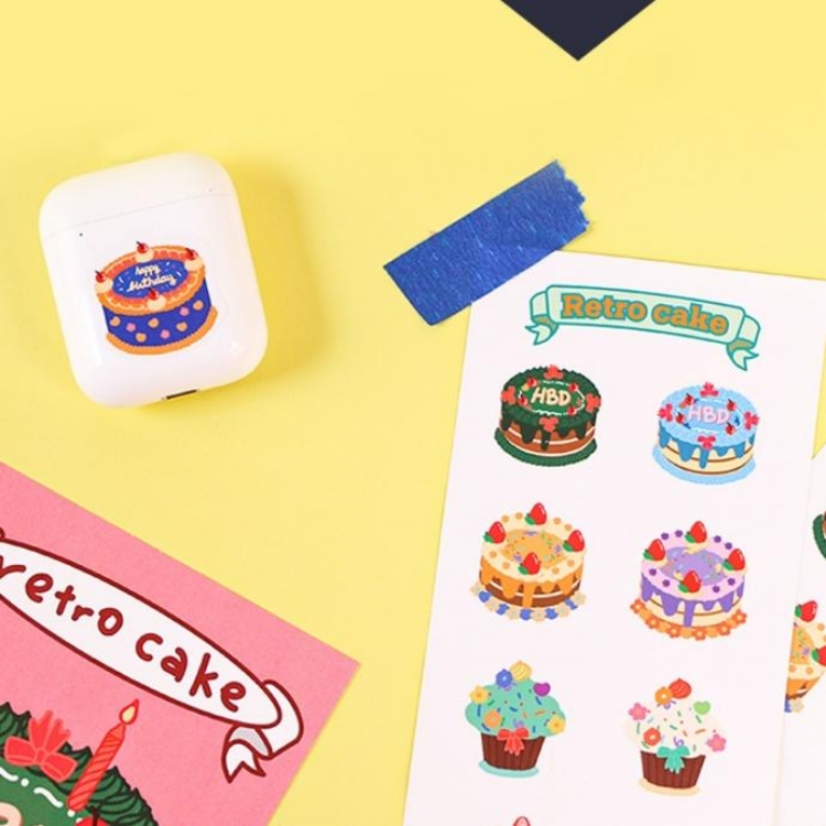귀여운 레트로 케이크 디저트 일러스트 스티커 - 레트로스티커 포인트 다꾸용품 감성 데코스티커 인테리어 핸드폰스티커 폰꾸 다꾸 선물스티커 다이어리 꾸미기
