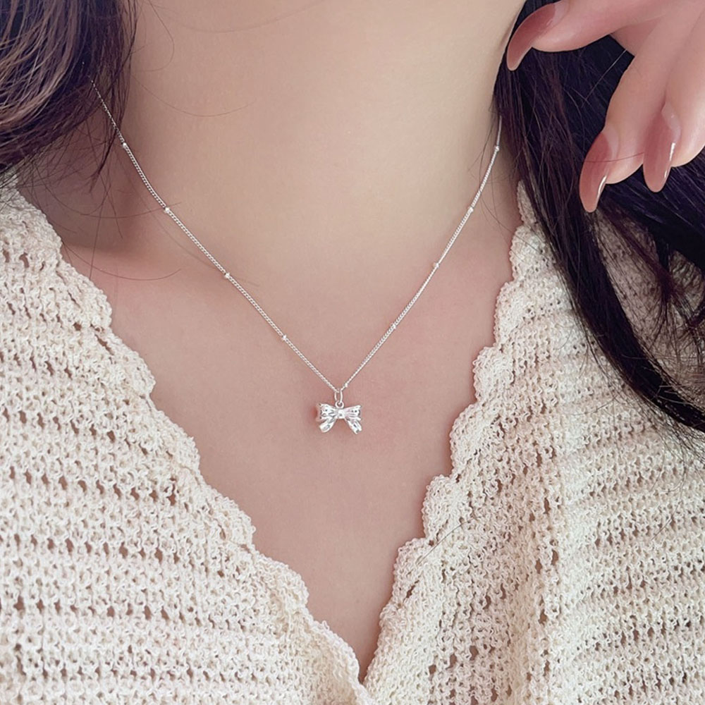 [오늘출발] 베이직 리본 데이트룩 캐주얼 실버 데일리 목걸이