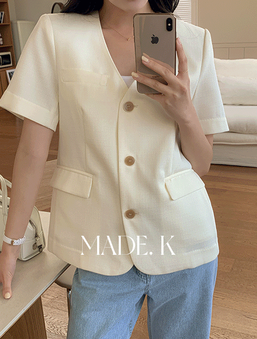 [MADE]베튼 브이넥 루즈핏 싱글 반팔 자켓 (S-L/하객룩/출근룩/여름자켓/여름아우터/하객룩자켓/기본자켓/오버핏자켓/루즈핏자켓)