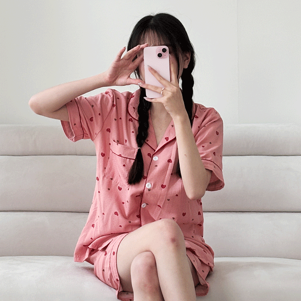 [1+1할인] 잔잔하트 반팔 파자마 잠옷세트 (24C057)