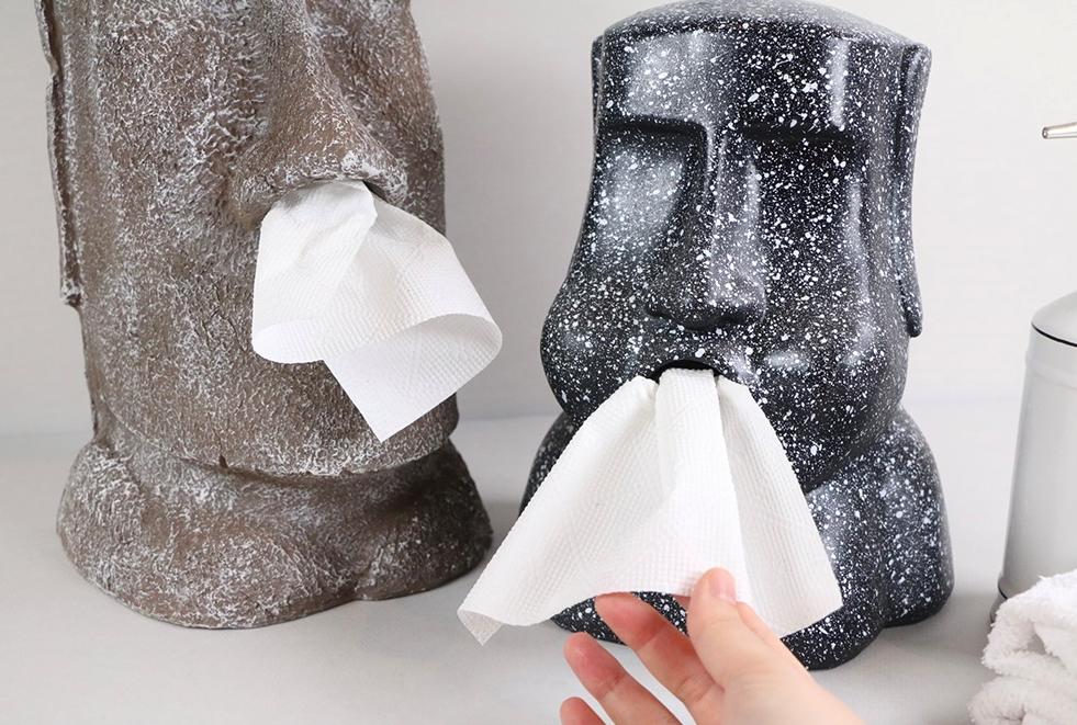 특이한 웃긴 모아이 석상 티슈케이스 2type - 재밌는선물 모아이석상 휴지케이스 티슈커버 휴지곽 티슈 화장지 디스펜서 웃긴휴지케이스 각티슈 커버 티슈곽