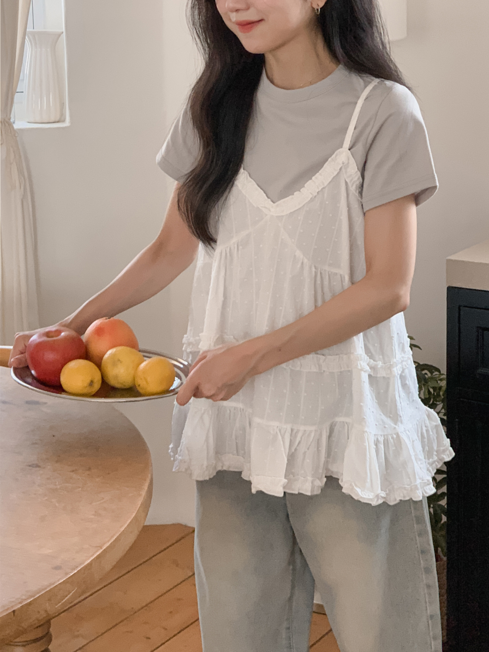 [뷔스티에/레이어드나시💙] 썸머🍉 프릴 A라인 끈조절 나시 티예/슬리브리스/바캉스룩/휴가룩/휴양지룩/동남아여행룩