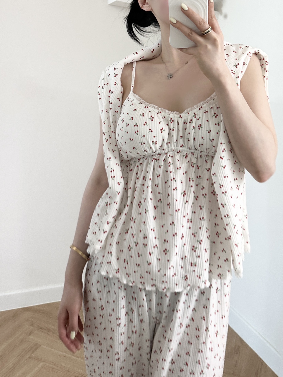 봄신상 체리 쓰리피스 가디건나시세트 잠옷 홈웨어