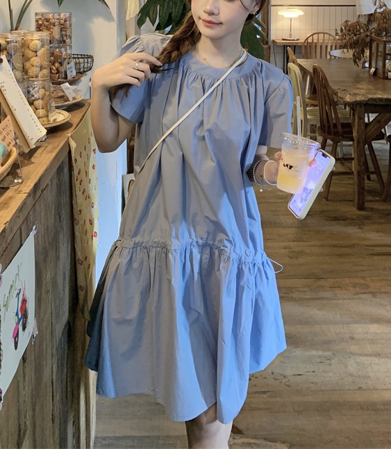퍼프 벌룬 캉캉 반소매 셔링 원피스 반팔원피스 캐주얼 일상 데일리원피스 바스락 블루원피스 시원한 여름원피스 루즈핏 오버핏 빅사이즈 임부복