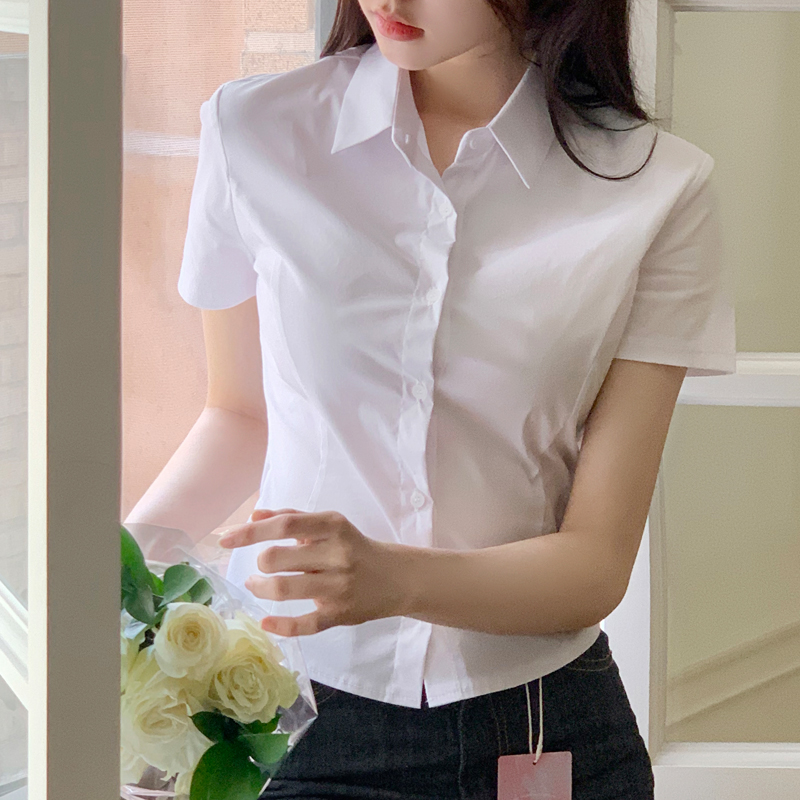 1000장 돌파✨ [구김걱정X, 슬림핏] 프린세스라인 크롭셔츠 반팔 셔츠 슬림핏 크롭셔츠 비율보정핏 데일리룩 오피스룩 구김없는소재 꾸안꾸룩 bs7928