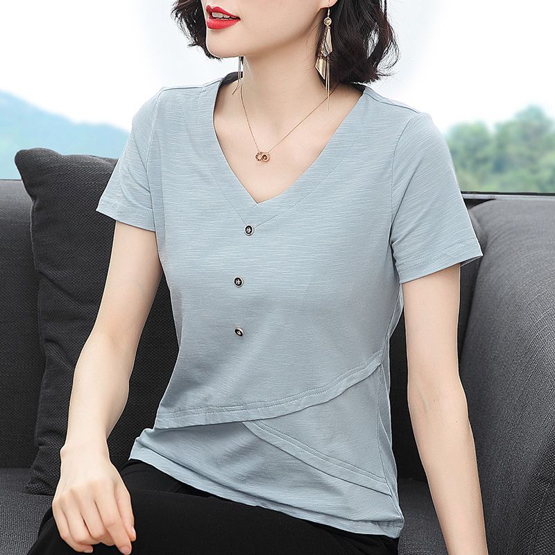 스타일아유 순면 브이넥 반팔 티셔츠 편한 중년 엄마옷 40대 50대 여성의류 데일리 TS2641