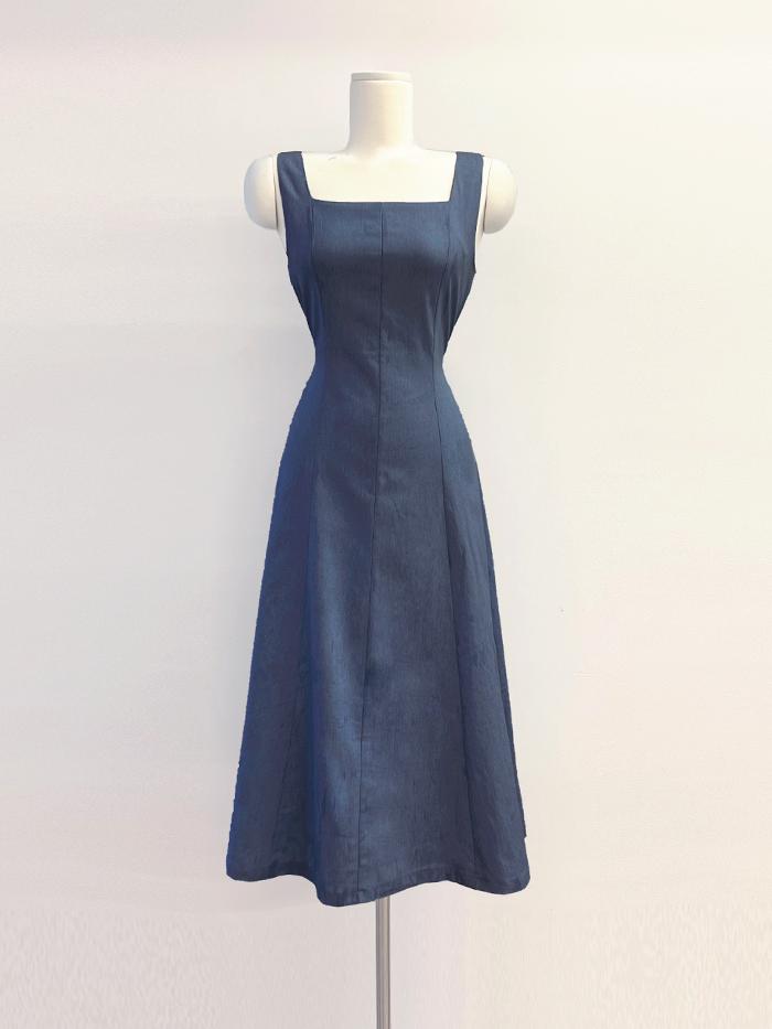 (3컬러) 더제이 스퀘어넥 스판 플레어 에이라인 데님롱원피스