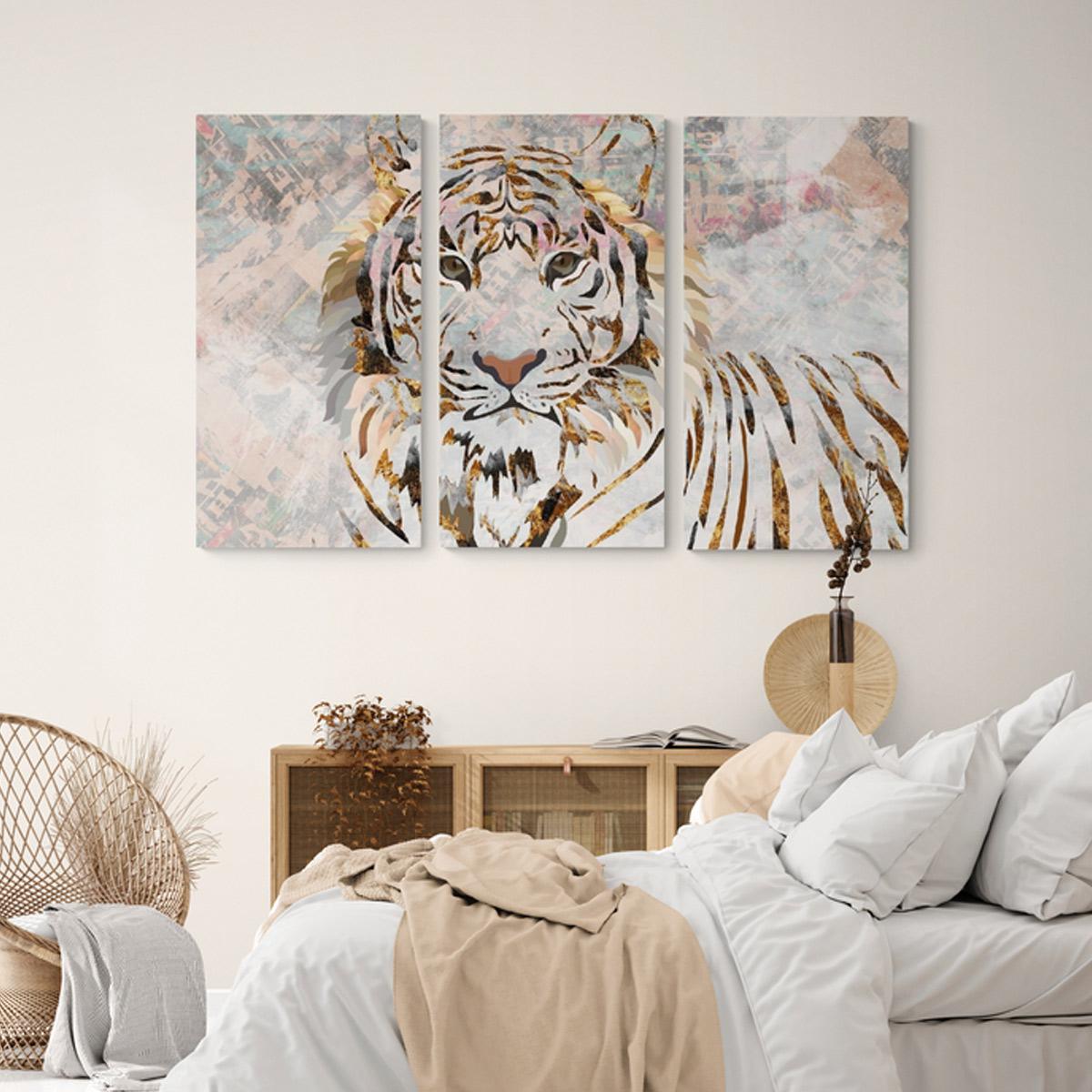 골드 호랑이 3분할 캔버스액자 초대형 풍수 인테리어