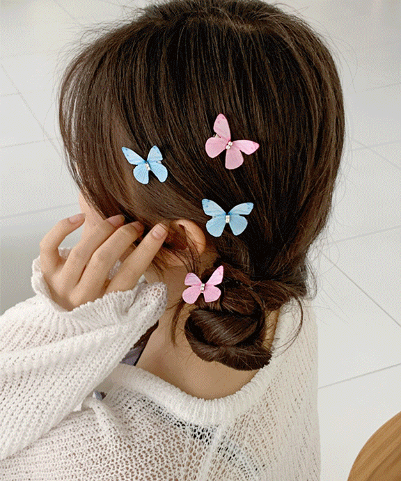 [ 4개드려요🦋 / 당일출고 ] 플뢰르 버터플라이 나비핀 나비 미니 헤어 실핀 집게핀 체육대회 페스티벌 워터밤 물놀이 헤어핀 세트