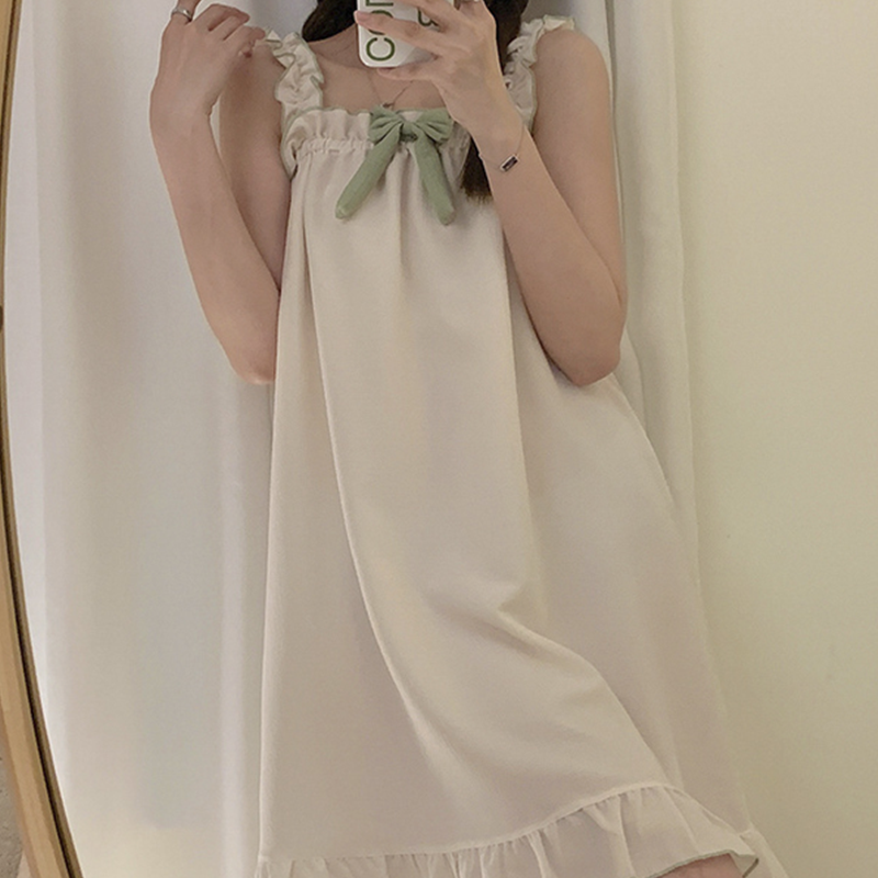 여성 여름 원피스 잠옷 세트 학생 중학생 편안한 시원한 프릴 리본 파자마