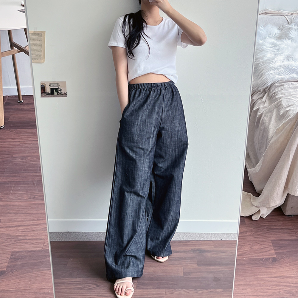 [코디SET가능]썸머 진청데님 하이웨스트 와이드밴딩팬츠/여름청바지/와이드데님/와이드청바지/진청바지/코디세트/데님뷔스티에/데님나시/썸머룩/바캉스룩/오버핏