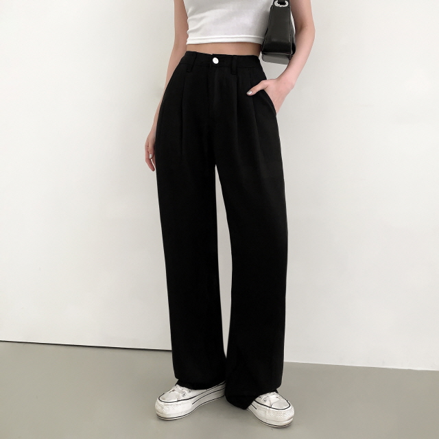 [쿨링🧊/3단기장] 인디어 쿨 텐셀 하이웨스트 히든밴딩 바지 투 핀턱 여름 와이드 팬츠