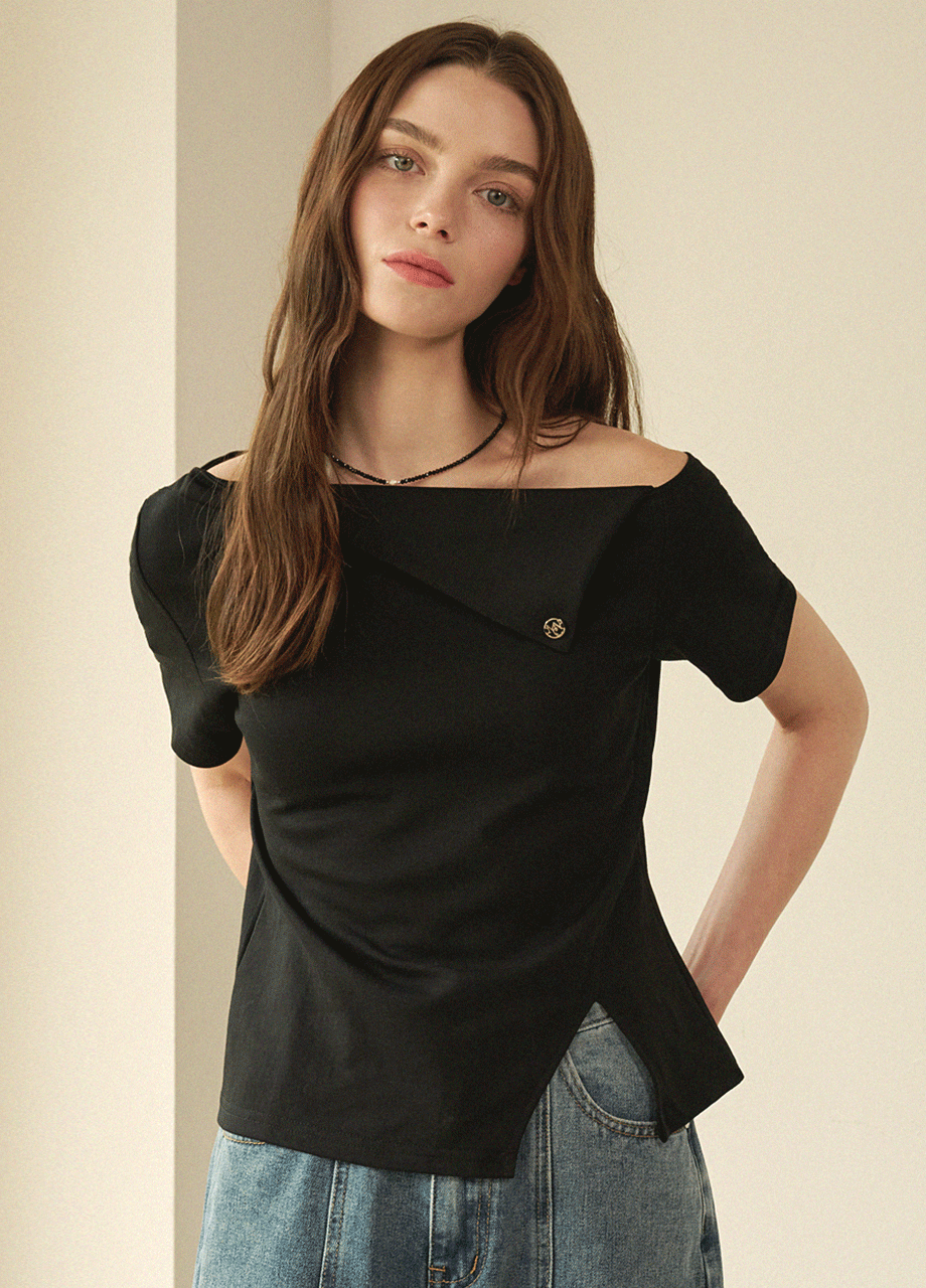 [44-120] Objet One Shoulder Tee 오브제 원 숄더 티 (여름-데일리룩-출근룩-데이트룩-캐주얼룩-하객룩-클래식룩-반소매-원숄더-언발-숄카라-빅사이즈-자체제작)