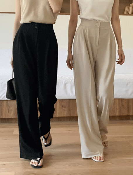 [4천장돌파][핏예술/잘록허리/극강의시원함♥][made] 썸머 쫀득 완벽 360˚ 하이비율 투버튼 핀턱 팬츠 [2Types숏/롱(+5cm)] (봄/여름/데일리/데일리룩/출근룩/하객룩/격식룩/오피스룩/슬랙스)