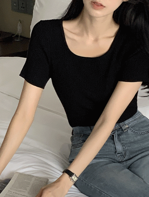 [2사이즈 추가/5천장돌파][MORREST][-3KG/쿨링감][made] 촉촉소프트 베이스 스퀘어넥 반팔 골지 니트(봄/여름/간절기/데일리/데일리룩/출근룩/데이트룩/하객룩/격식룩/오피스룩/피크닉/골지/스퀘어넥)