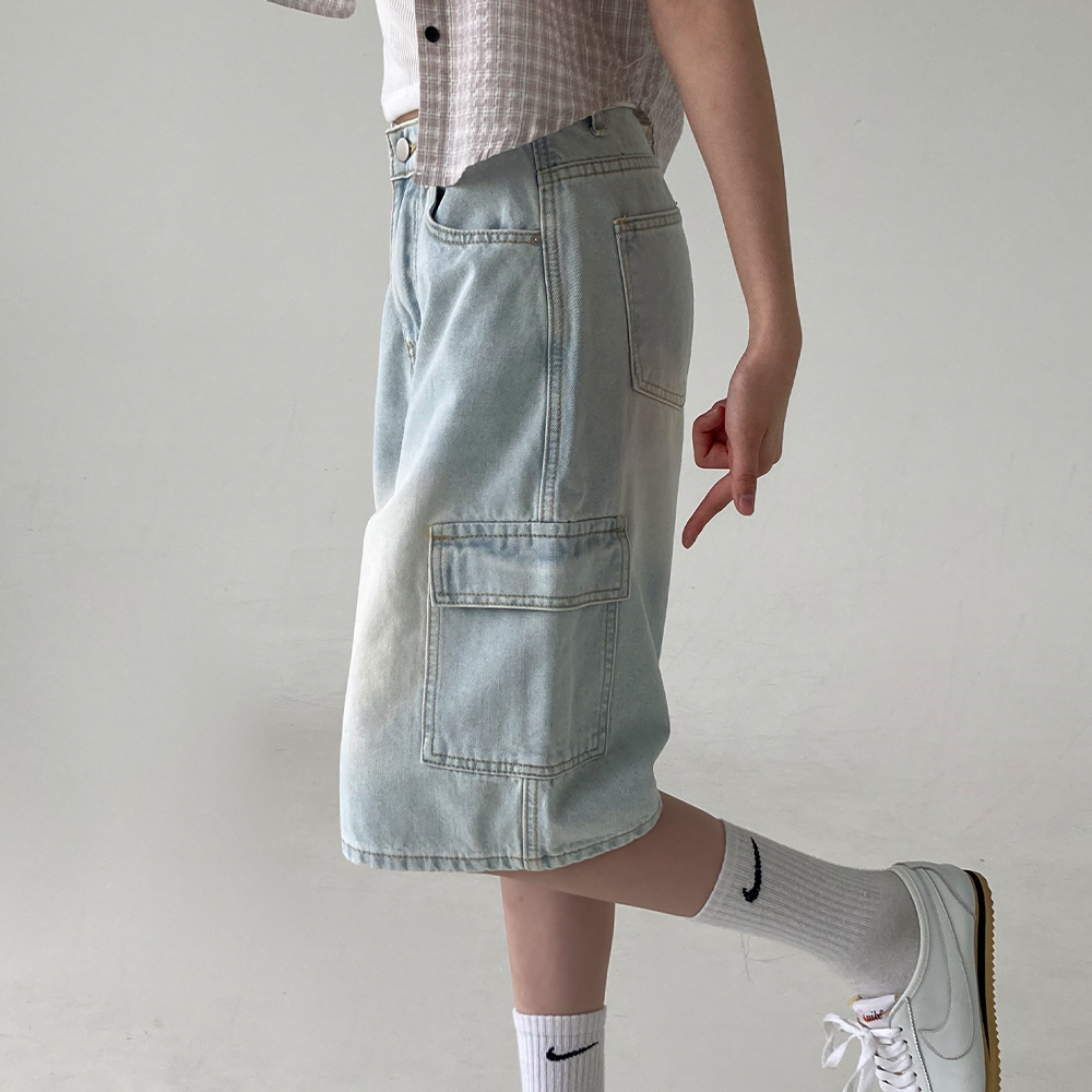 [무료배송]당일발송[고퀄/XL까지]엔토 버뮤다 데님 팬츠 - 반바지 포켓 버뮤다 7부팬츠 유니크 힙 데일리