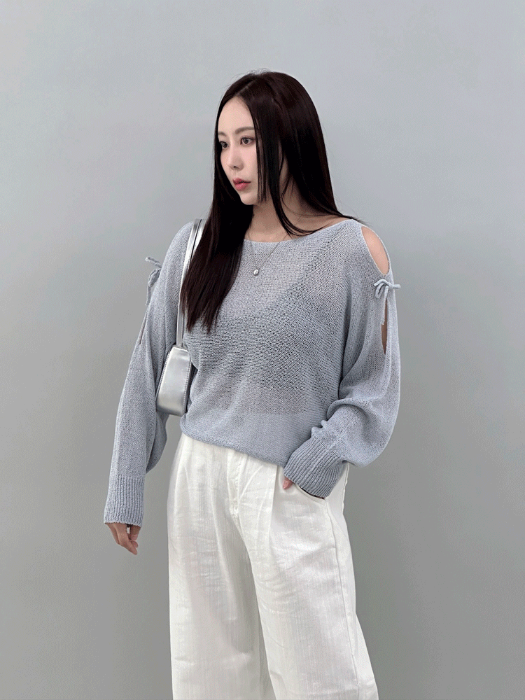 1167 리본 어깨트임 시스루 부클 니트[5color/44-88]
