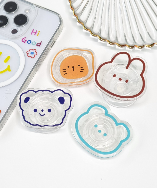 🚀당일출고💝 귀요미 투명 스마트톡 그립 귀여운 곰돌이 토끼 톡거치대 핸드폰 휴대폰 홀더