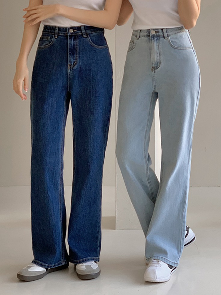 [3천장 돌파✨][착붙문신템/라인보정핏][35-36] 볼드런 스판 속밴딩 세미부츠컷 데님 팬츠 청바지 ( 봄-여름-데일리룩-데이트룩-캐주얼룩-출근룩-캠퍼스룩-베이직룩-36사이즈-자체제작-부츠컷 )
