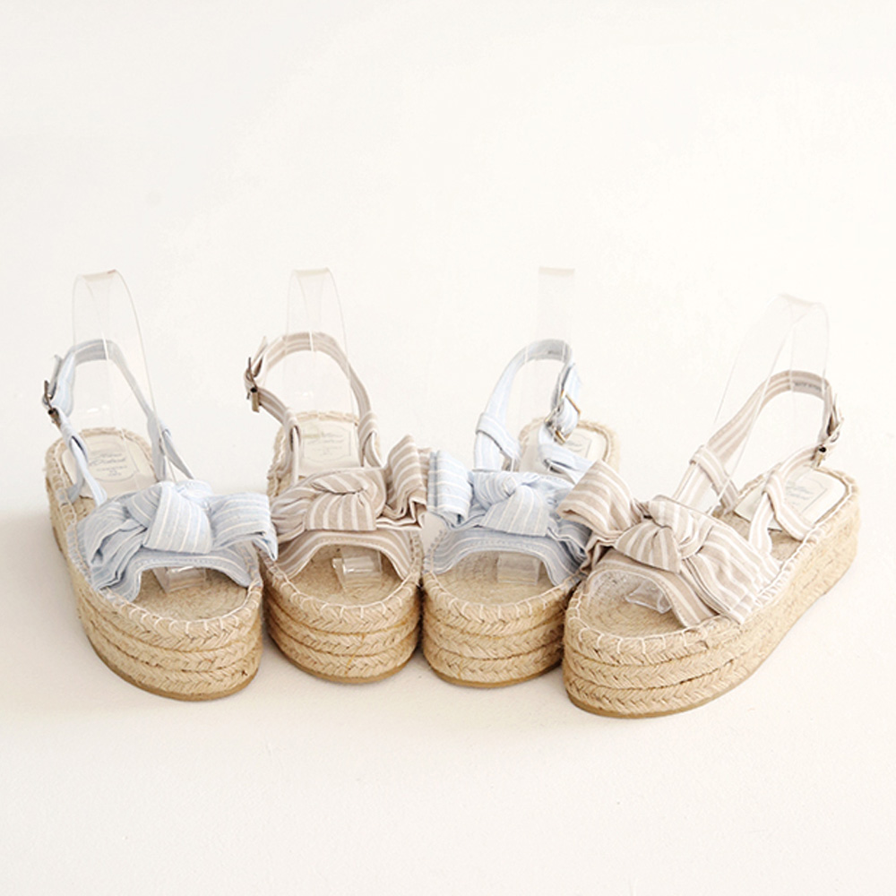 메이코 에스파듀 리본 스트랩 통굽 샌들 힐 5cm