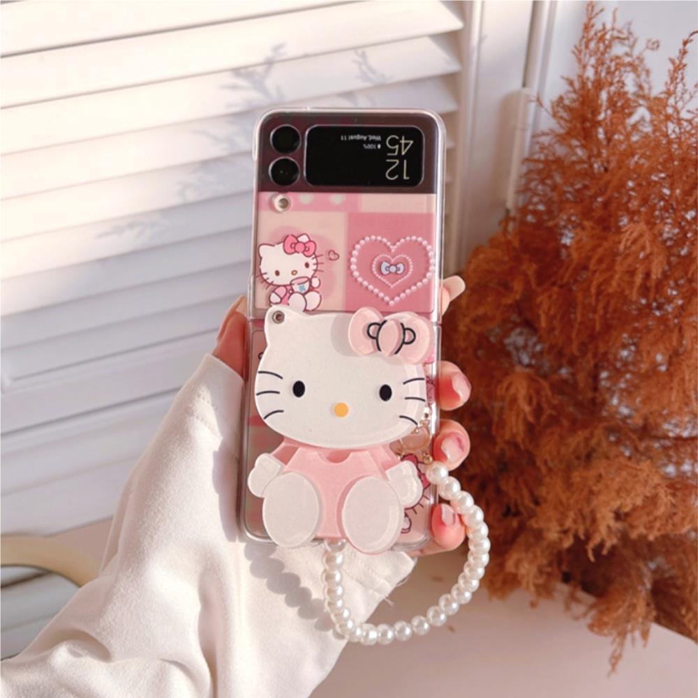 [갤럭시케이스/Z플립시리즈/키티거울] 키티 케이스 미러 거울 케이스 귀여운케이스 미니거울 커플케이스 우정케이스 산리오 헬로키티 Z플립3 4 5 6 7 갤럭시거울 아이폰케이스
